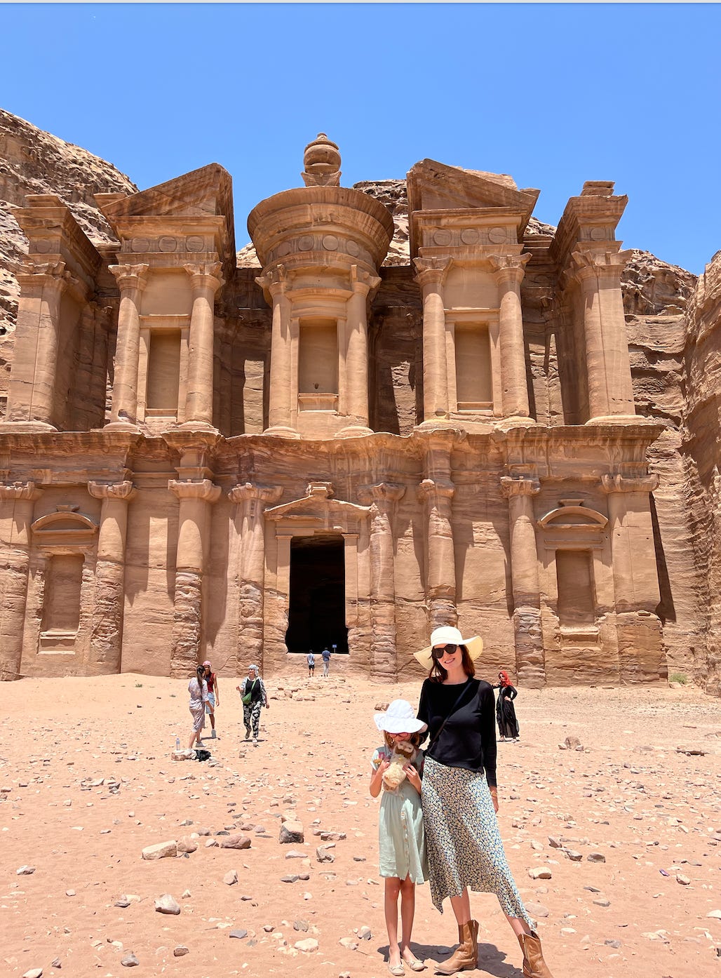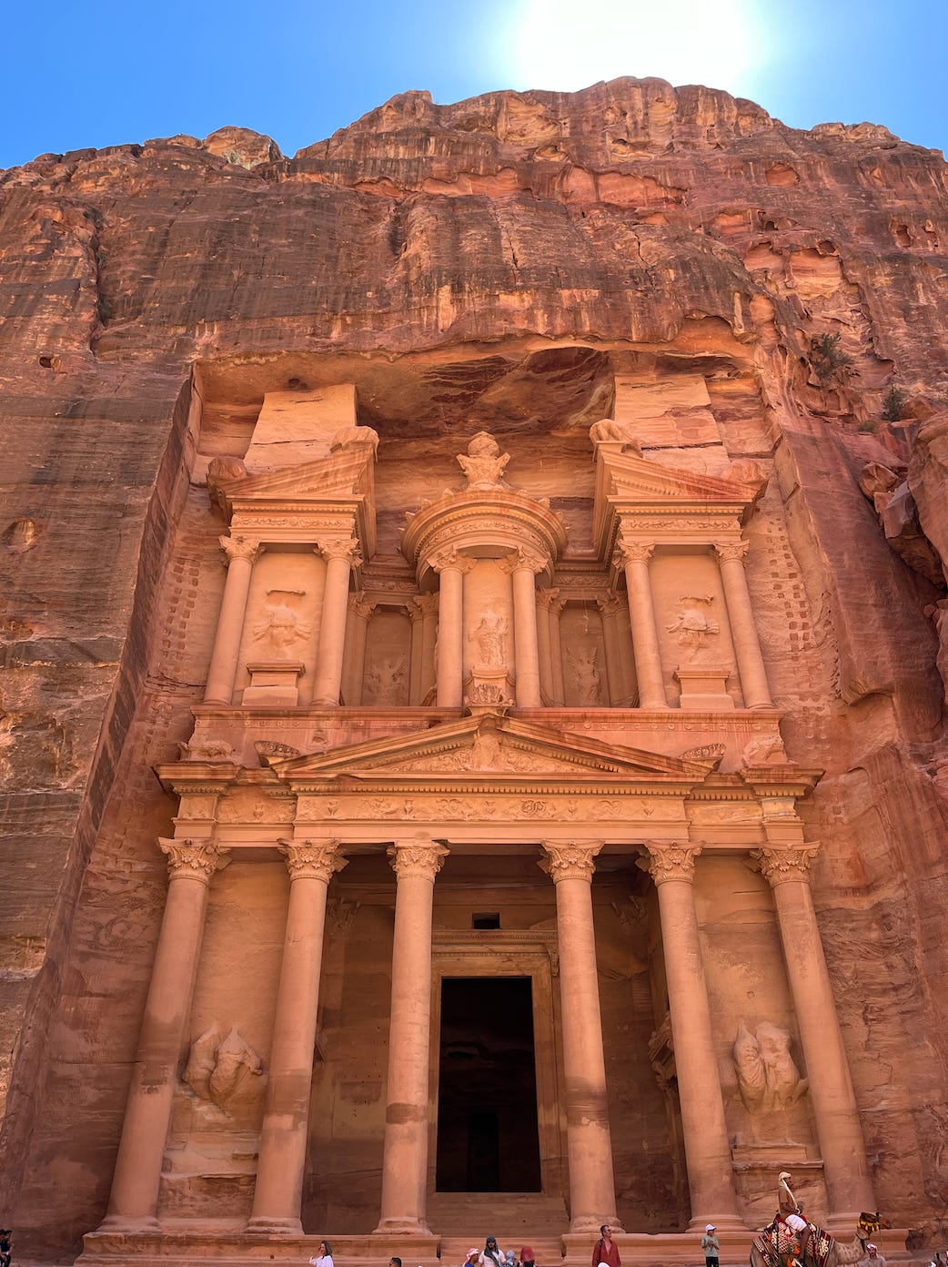 Today dear reader, I’m writing from a desert camp about two hours south of the lost city of Petra. We spent the last few days visiting the Treasury, the Great Palace as well as the Monastery (via the “easy” back route which included a two hour hike with very sheer cliffs.)