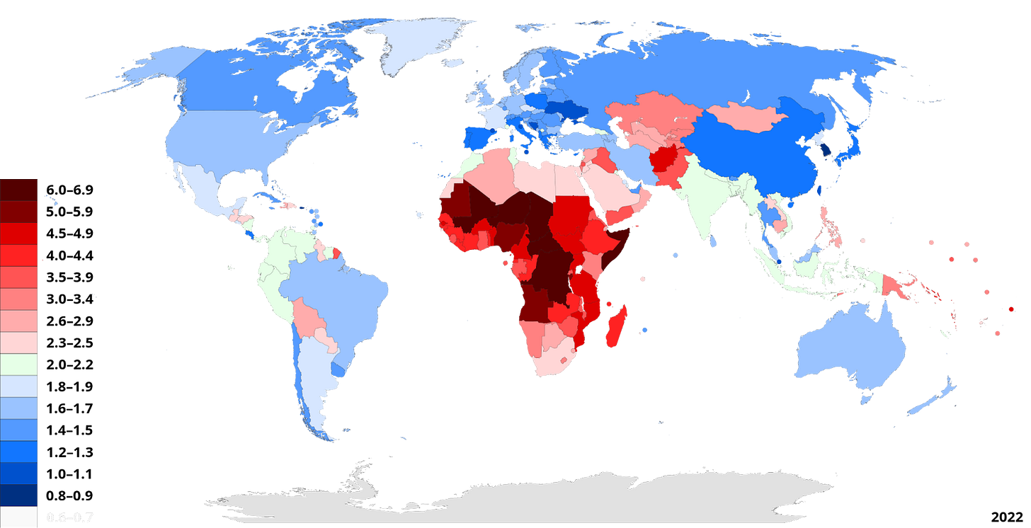 Even India AND Bangladesh are below replacement at 2.0. Only in sub Saharan Africa do they still make enough children to resupply the next generation.