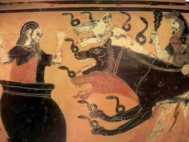 While Cerberus was a notable creature of mythology, he is probably best remembered as the twelfth and final labor that Heracles most perform. Heracles must enter the underworld, wrestle the beast using no weapons, and then bring Cerberus to the surface world, alive, to present to the Mycenaean king Eurystheus, the man who had originally ordered Heracles to perform these tasks as recompense for his past sins.