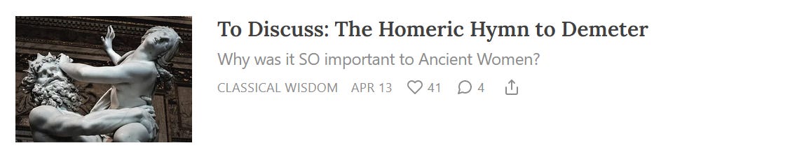 We’ll be talking about the Homeric Hymn to Demeter, which is about as close as you can get to an ‘original version’ of the endlessly enduring myth of Hades and Persephone. Plus, the truth about the Thesmophoria festival (familiar to fans of Aristophanes) and how it was crucial to female power in the ancient world.