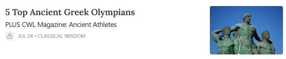 Members can discover the Top Five ancient Greek Olympians, and also check out the history of ancient sport in a special edition of our magazine Classical Wisdom Litterae.