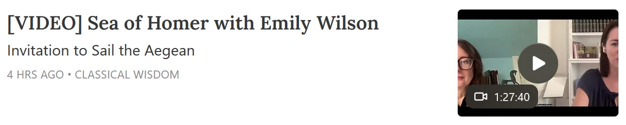 This week, we were joined by none other than Emily Wilson, acclaimed translator of the Odyssey and the Iliad. It was a fantastic event and a wonderful conversation on Homer, and what the ancient epics mean to us today.
