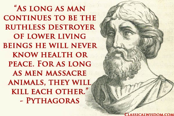 For instance, the Greek philosopher Pythagoras, who probably lived around the sixth century BC, taught a doctrine of reincarnation and promoted vegetarianism. He apparently felt that humans could be reincarnated as other animals, and vice versa, and so was against eating animals which may have been a person in a previous life. However, we do not have any of Pythagoras’ own writings to confirm this belief and our sources only go back to the fifth century BC, a century after his death.